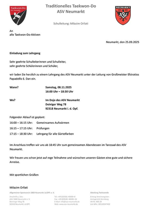 – 08.11.25 Lehrgang in Neumarkt unter der Leitung von GM E. Papadellis